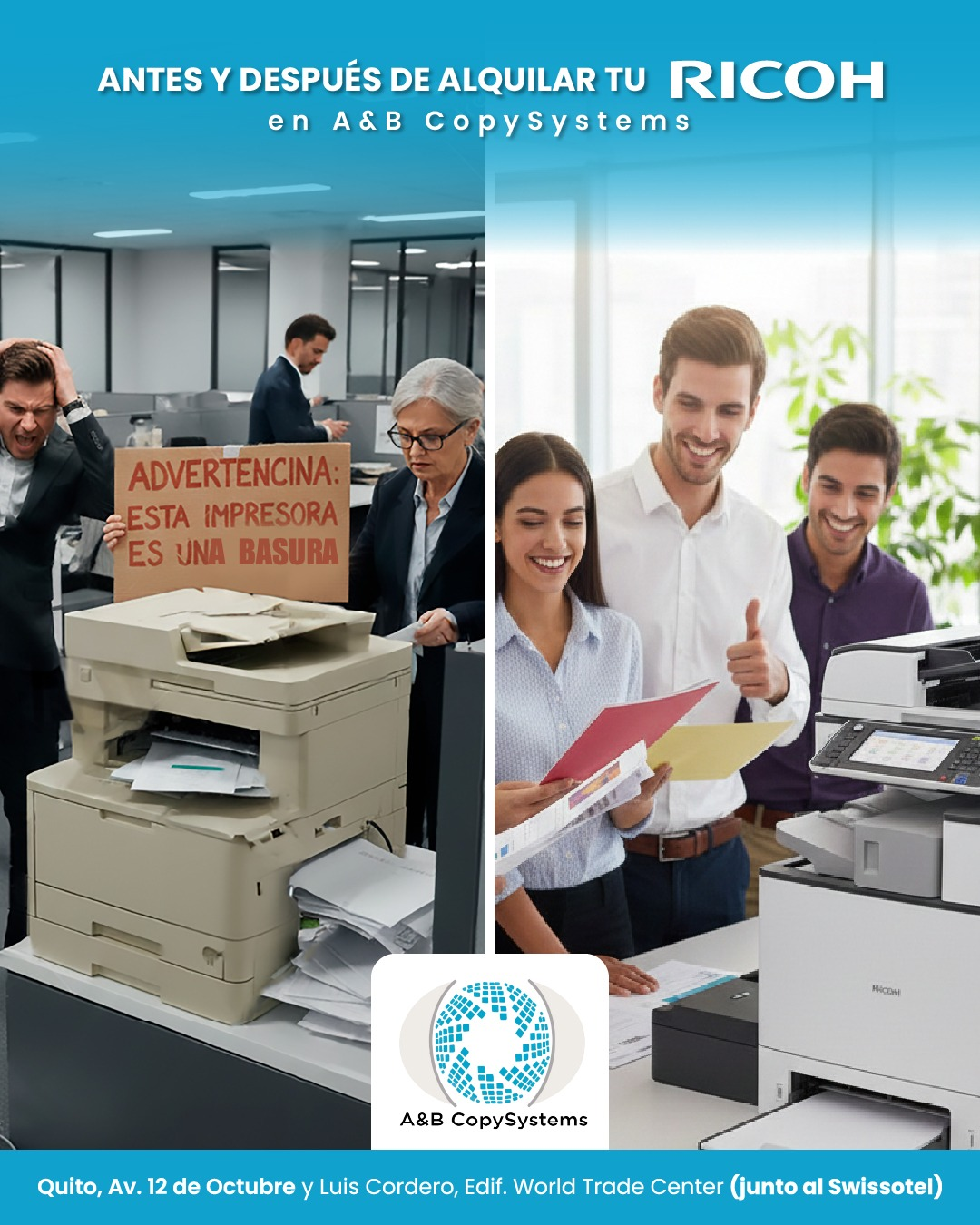 ¿Buscas una alternativa eficiente y económica para acceder a equipos de impresión de alta calidad? Nuestro servicio de renta de impresoras multifunción Ricoh en Ecuador te permite evitar la inversión inicial y centrarte en lo que importa: tu negocio. Incluimos soporte técnico, insumos y mantenimiento preventivo y correctivo, en un servicio integral que prioriza tu productividad.